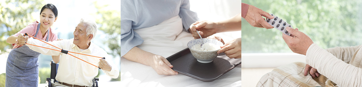 관절구축 예방활동, 보행, 서있기 연습 보조, 기구사용 운동보조, 보장구 장치도움 |